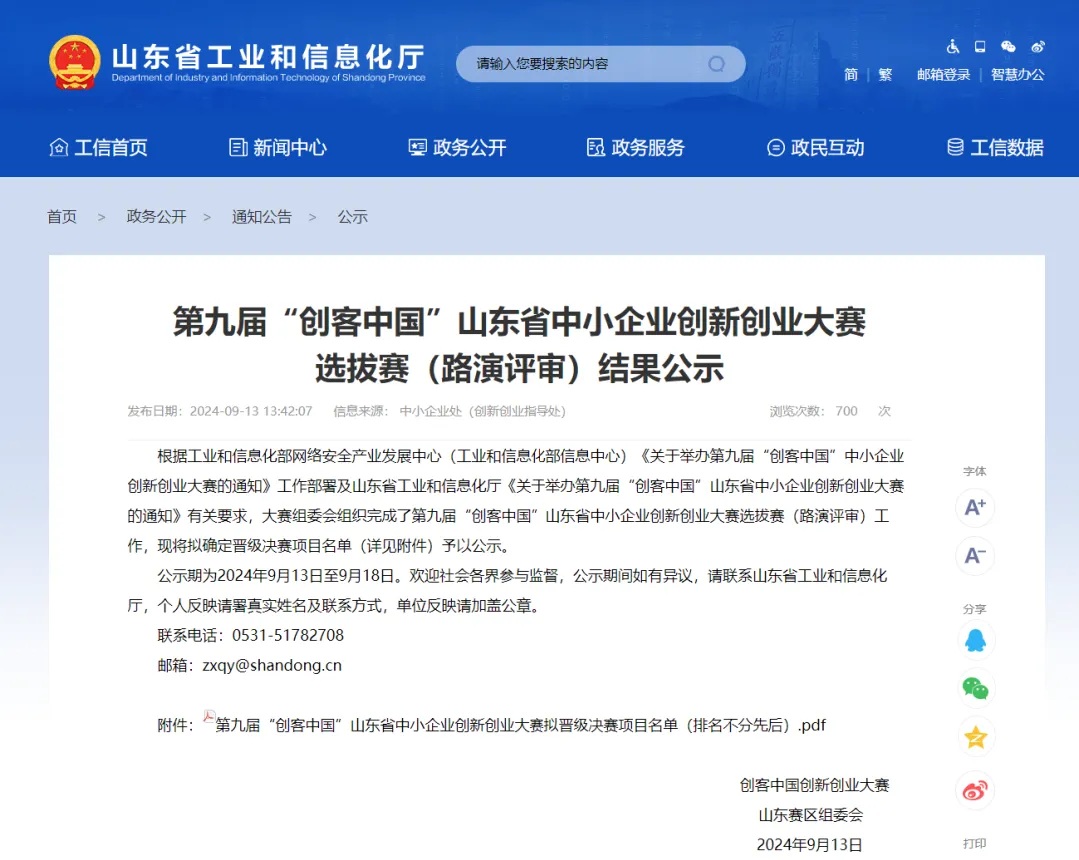 2024年9月13日,山东省工业和信息化厅公示了第九届“创客中国”山东省中小企业创新创业大赛选拔赛(路演评审)结果。山东车拖车网络科技有限公司的“数智化汽车整车物流服务平台”项目在激烈的竞争中成功晋级决赛!