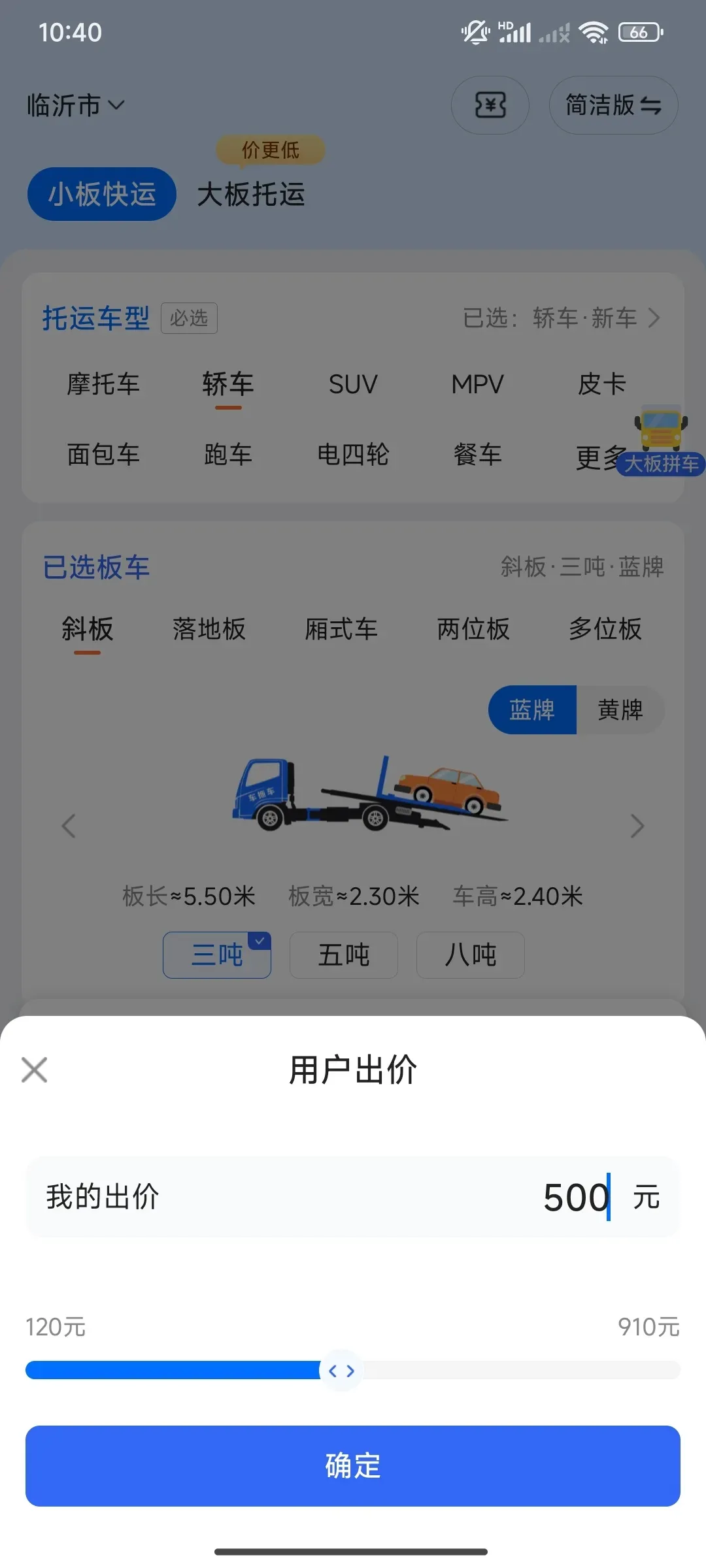 选择车型及车辆状态后,点击用户出价,即可实现自定义出价。