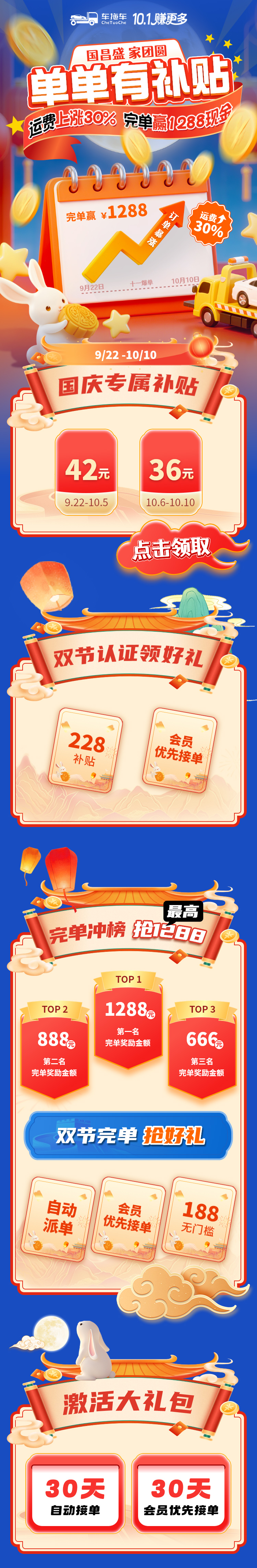 0元领车贴 | 双节狂欢!运费上调30%!赢1288元现金!