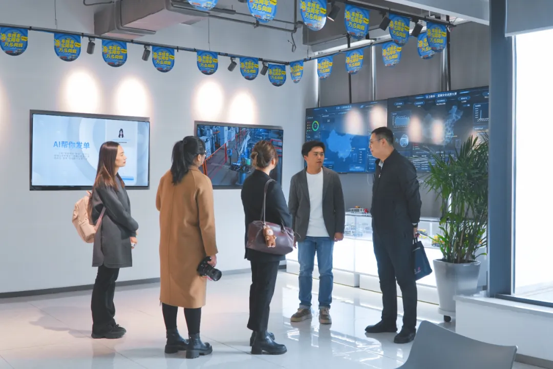 在联合创始人陈程的陪同下,盖海燕副秘书长一行先后参观了车拖车的办公区域、技术研发中心及科技展厅等地。参观过程中,陈总系统介绍了公司的发展历程、业务模式以及未来规划,并强调我司自成立以来,始终致力于推动互联网技术与传统汽车托运行业的深度融合,凭借自主研发的智能调度系统,实现车辆运输全流程的高效管理,大幅提升了运输效率与客户满意度。